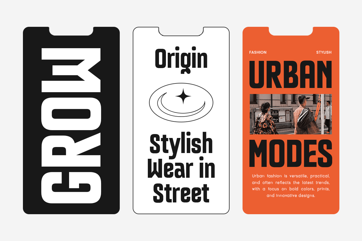 Bold and stylish condensed letterforms for headlines and branding