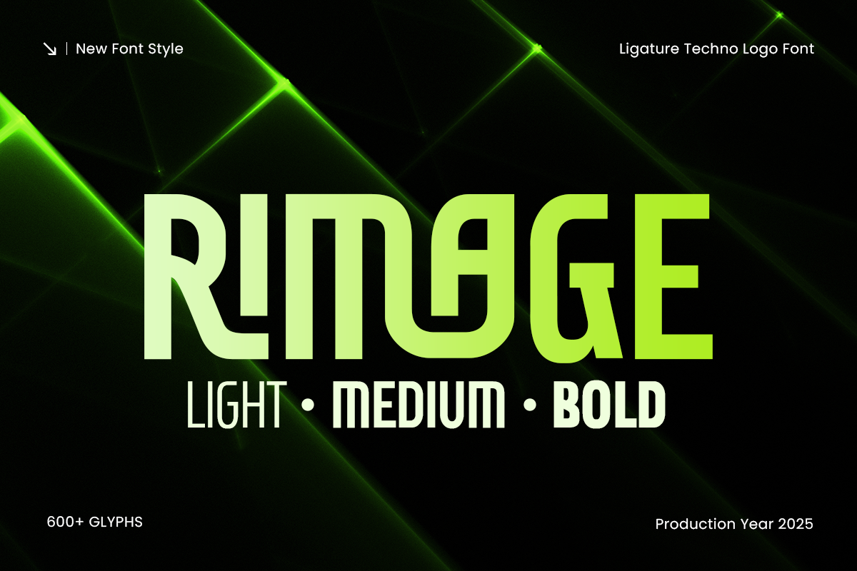 Advance your branding with RIMAGE – the ultimate ligature techno font for futuristic, digital, and innovative design. ⚡
