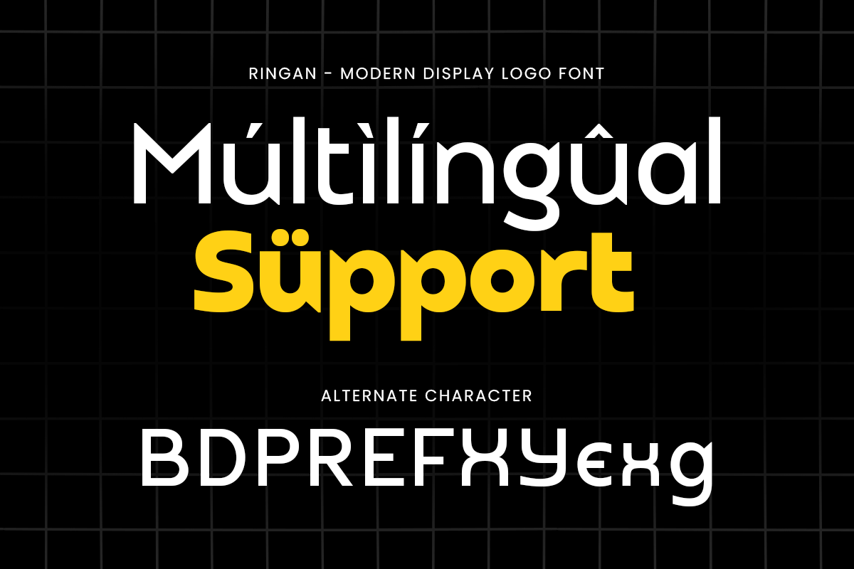 Its minimalist construction allows RINGAN to adapt effortlessly to a wide range of styles — from professional corporate branding to creative visual projects. Perfect for tech startups, fashion labels, or design studios, it delivers both clarity and sophistication in every letterform.